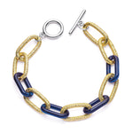 Pera Jewelry 14K Gold-Silver-Rose Gold Filled Twist Link Bracelet, Paperclip Oval Link Bracelet, Bold Chain Bracelets, Retro Style Chain Bracelet, Chunky T-Bar Bracelet with Gift Box Gold - Navy
