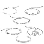 Pera Jewelry 14K Gold and Silver Plated Layered Bracelet Sets, 6 Pieces, Adjustable Layered Link Bracelets Sets, Dainty Link Paperclip Choker Bracelet Cuban Curb Figaro Link Bracelet Sets with Gift Box