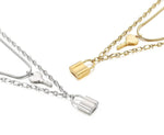ADJUSTABLE CHAIN SIZE: Chain length: 22 inches and 19 inches with a 2 inches extender. | PENDANT SHAPE: Filled Lock and Key.